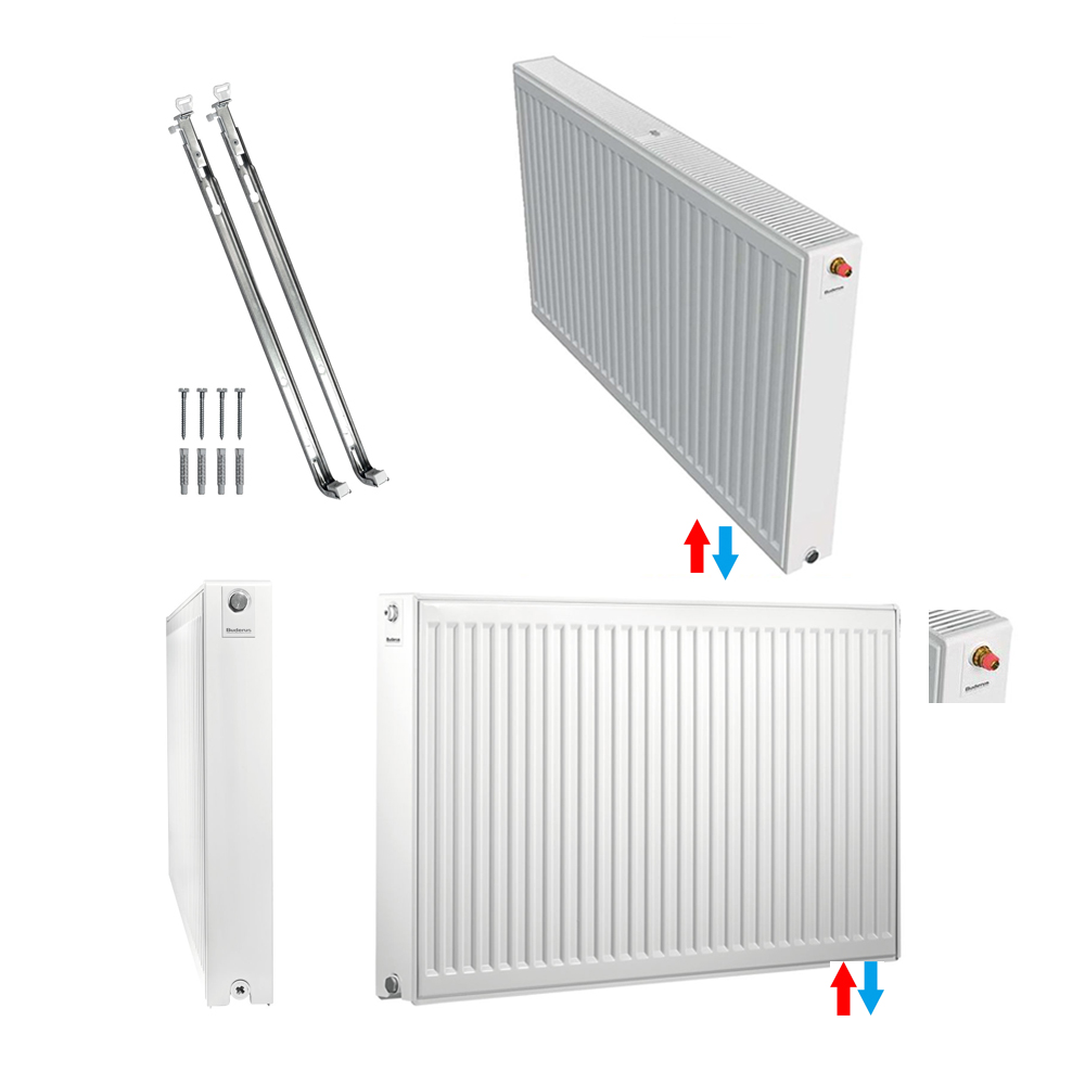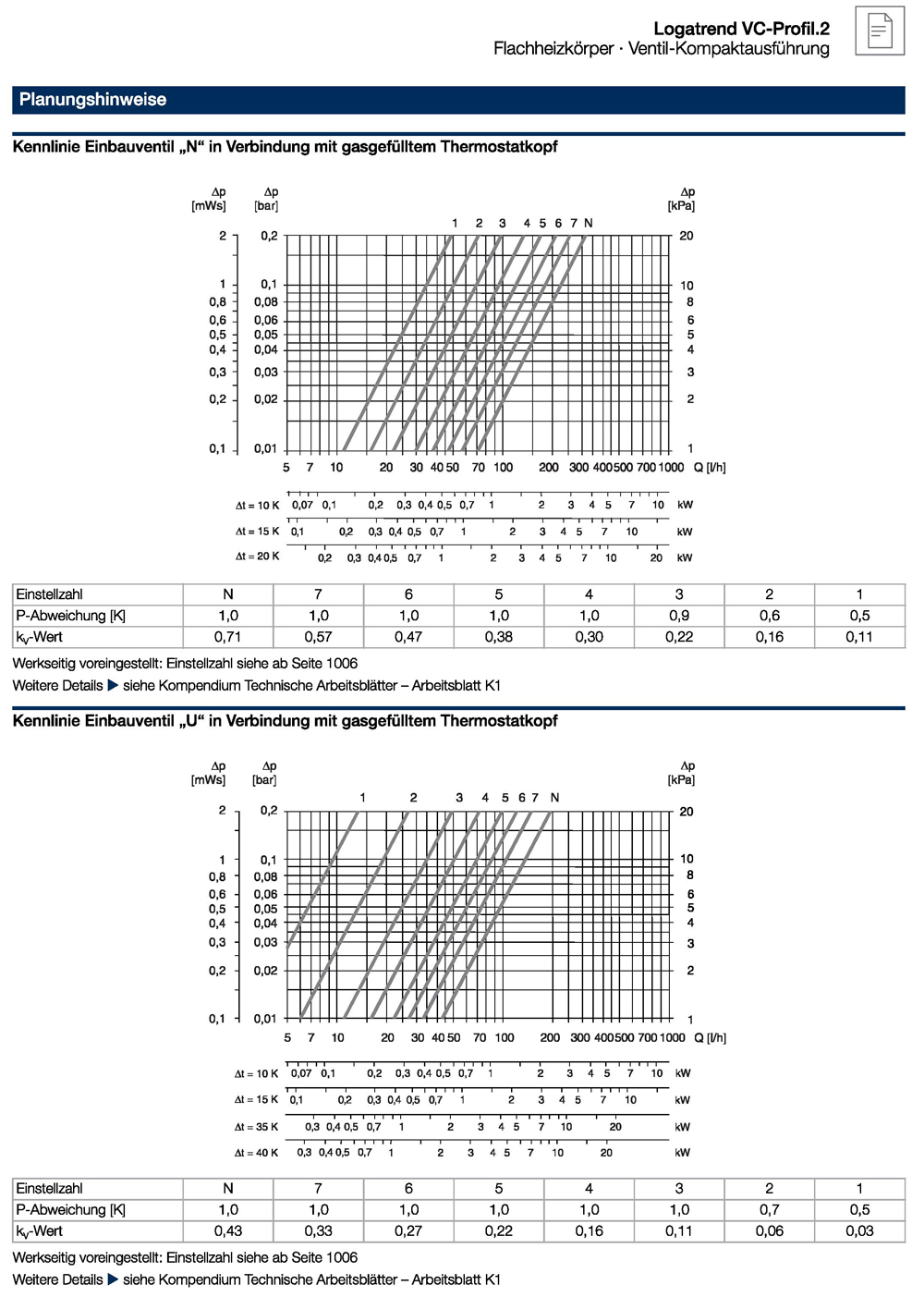 Profilierter Flachheizkörper aus kaltgewalztem Stahlblech nach EN 442, Verkleidung in Ventilkompaktausführung. Integrierte, RECHTS angeordnete Ventilgarnitur für Zweirohrbetrieb sowie Einbauventil, Blind- und Entlüftungsstopfen werkseitig eingebaut. Einrohrbetrieb in Verbindung mit einer Einrohr-Bypass-Armatur. Stabile, vertikale Profilierung mit Sickenteilung 33 1/3 mm. Rohrleitungsanschluss über 2 untere G 3/4-Außengewinde nach DIN V 3838. Hochwertige, umweltfreundliche Lackierung gemäß DIN 55900. Erhöhter Korrosionsschutz durch standardmäßige Lackierung in 3 Fertigungsphasen: Entfettung sowie Phosphatierung, kataphoretische Tauchgrundierung (nicht bei Seitenteilen und Abdeckgitter) und anschließende Einbrenn-Pulverlackierung mit hoher Kratz- und Schlagfestigkeit in RAL 9016 verkehrsweiß. Im Heizbetrieb emissionsfrei. Heizkörper in Schrumpffolie mit Kunststoff-Kantenschutzecken sowie Kartonage als Transport- und Montageschutz verpackt. Vorbereitet für Buderus-Montage-System BMSplus.2. Heizkörperverkleidung bestehend aus Seitenteilen sowie demontierbarem Abdeckgitter. Garantierter Qualitätsstandard mit Registrierung nach RAL-Gütezeichen RAL-RG 618. Wärmeleistung DIN EN 442 geprüft (Prüfstellennummer 1015) mit permanenter Fertigungsüberwachung nach EN-ISO 9001. Je nach spezifischer Wärmeleistung ist hinsichtlich der Regelcharakteristik eines von 2 optimierten Einbauventilen werkseitig (mit Kunststoff-Schutzkappe) eingebaut. Der kv-Wert ist werkseitig voreingestellt und auf die spezifische Wärmeleistung abgestimmt. Die Voraussetzungen zur Förderfähigkeit bezüglich des hydraulischen Abgleichs sind somit erfüllt. Es ergibt sich eine optimierte hydraulische und regelungstechnische Situation. Einfache, schnelle Montage eines Fühlerelements (Thermostatkopf) mittels Klemmanschluss. In Kombination mit einem Gasfühlerelement ergibt sich über den gesamten kv-Wert-Bereich (N-Ventil bis zu 0,71 / U-Ventil bis zu 0,43) eine Auslegungs-Proportional-Abweichung < 1K, was zur Energieeinsparung beiträgt. Gegenüber konventionellen Einbauventilen führt dies zu einem besseren Regelverhalten und bis zu 5 % Energieeinsparung nach DIN V 4701-10. Inklusive Buderus-Montagesystem-Set zur Wandmontage, welches die Anforderungsklassen 1 und 2 gemäß der VDI- Richtlinie 6036 erfüllt.