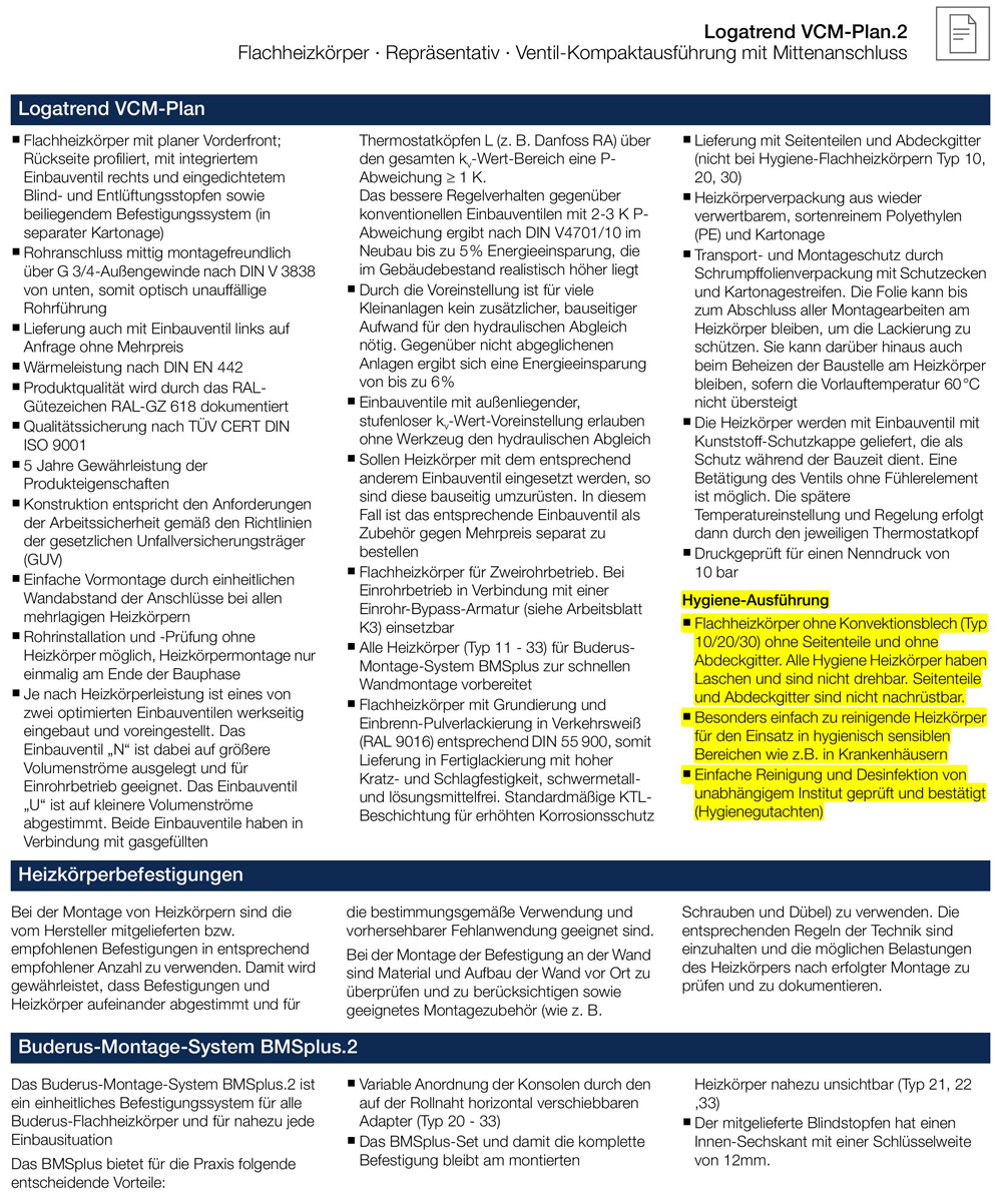 Buderus Logatrend Ventilkompakt Flachheizkörper Hygieneheizkörper VCM-Plan.2