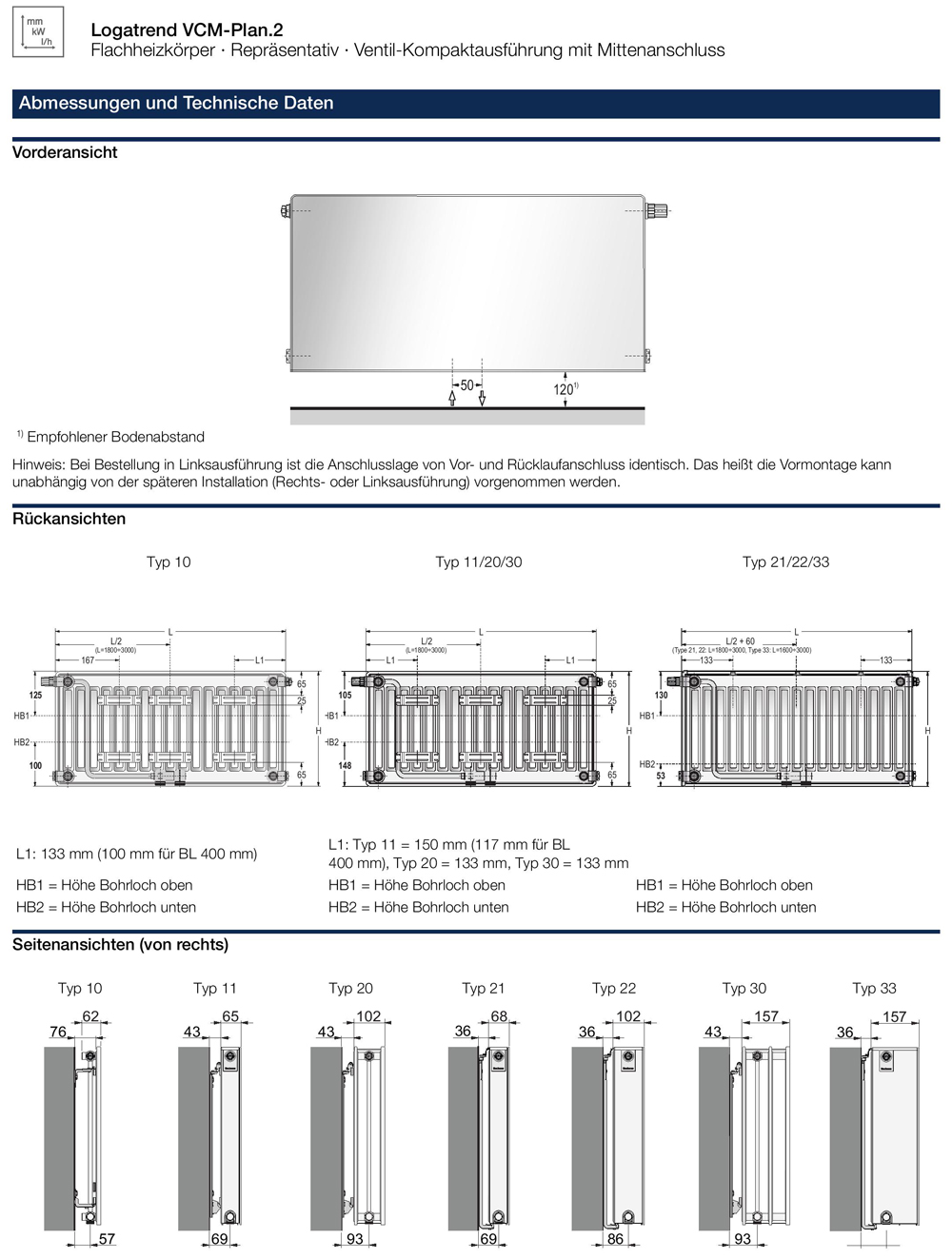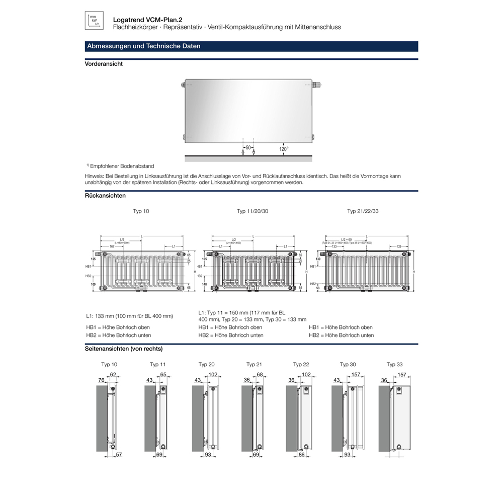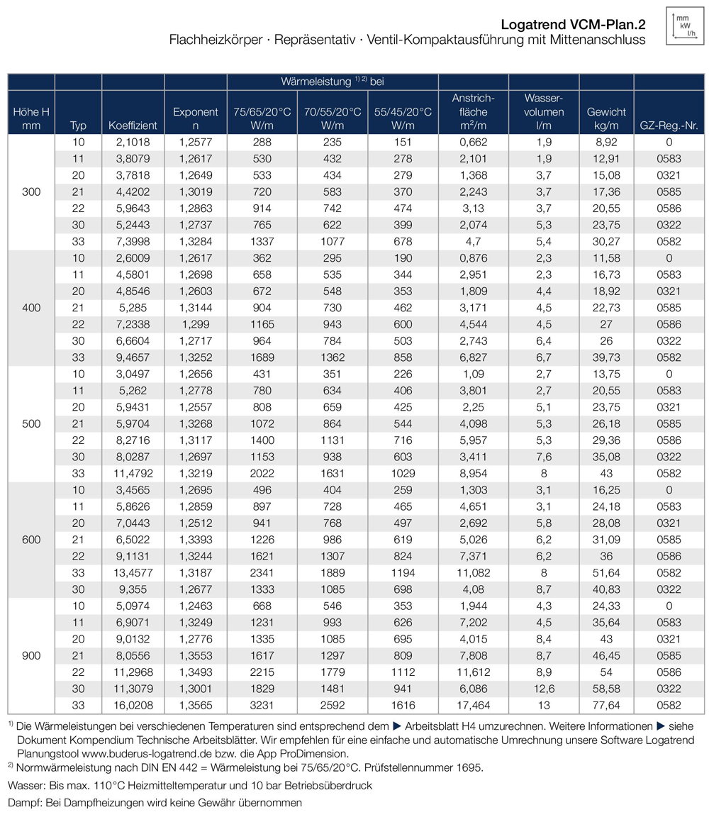 Buderus Heizkörper VCM-Plan.2 Logatrend Höhe 900mm Typ 11 21 22 33 L=400-3000