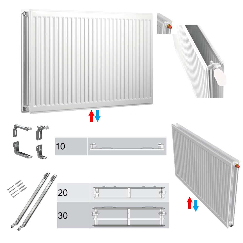 Profilierter Flachheizkörper aus kaltgewalztem Stahlblech n. EN 442 in der Ventilkompakt-Hygieneausführung ohne Konvektionsbleche,Seitenteile und Abdeckgitter. Besonders einfach zu reinigender Heizkörper für den Einsatz in hygienisch sensiblen Bereichen. Einfache Reinigung und Desinfektion von unabhängigen Instituten geprüft und bestätigt. Stabile, vertikale Profilierung mit Sickenteilung von 33 1/3 mm. Integrierte, RECHTS angeordnete Ventilgarnitur für Zweirohrbetrieb sowie Einbauventil, Blind- und Entlüftungsstopfen werkseitig eingebaut. Einrohrbetrieb in Verbindung mit einer Einrohr-Bypass-Armatur. Rohrleitungsanschluss über 2 untere, mittige G 3/4-Außengewinde nach DIN V 3838 für einheitliche Anschlussposition. Hochwertige, umweltfreundliche Lackierung gemäß DIN 55900. Erhöhter Korrosionsschutz durch standardmäßige Lackierung in 3 Fertigungsphasen: Entfettung sowie Phosphatierung, kataphoretische Tauchgrundierung und anschließende Einbrenn-Pulverlackierung mit hoher Kratz- und Schlagfestigkeit in RAL 9016 verkehrsweiß. Im Heizbetrieb emissionsfrei. Heizkörper in Schrumpffolie mit Kunststoff-Kantenschutzecken sowie Kartonage als Transport- und Montageschutz verpackt. Vorbereitet für Buderus-Montage- System BMSplus.2. Garantierter Qualitätsstandard mit Registrierung nach RAL-Gütezeichen RAL-RG 618. Wärmeleistung DIN EN 442 geprüft (Prüfstellennummer 1015) mit permanenter Fertigungsüberwachung nach EN-ISO 9001. Je nach spezifischer Wärmeleistung ist hinsichtlich der Regelcharakteristik eines von 2 optimierten Einbauventilen werkseitig (mit Kunststoff-Schutzkappe) eingebaut. Der kv-Wert ist werkseitig voreingestellt und auf die spezifische Wärmeleistung abgestimmt. Die Voraussetzungen zur Förderfähigkeit bezüglich des hydraulischen Abgleichs sind somit erfüllt. Es ergibt sich eine optimierte hydraulische und regelungstechnische Situation. Einfache, schnelle Montage eines Fühlerelements (Thermostatkopf) mittels Klemmanschluss. In Kombination mit einem Gasfühlerelement ergibt sich über den gesamten kv-Wert-Bereich (N-Ventil bis zu 0,71 / U-Ventil bis zu 0,43) eine Auslegungs-Proportional-Abweichung < 1K, was zur Energieeinsparung beiträgt. Gegenüber konventionellen Einbauventilen führt dies zu einem besseren Regelverhalten und bis zu 5 % Energieeinsparung nach DIN V 4701-10. Inklusive Buderus-Montagesystem-Set zur Wandmontage, welches die Anforderungsklassen 1 und 2 gemäß der VDI- Richtlinie 6036 erfüllt.