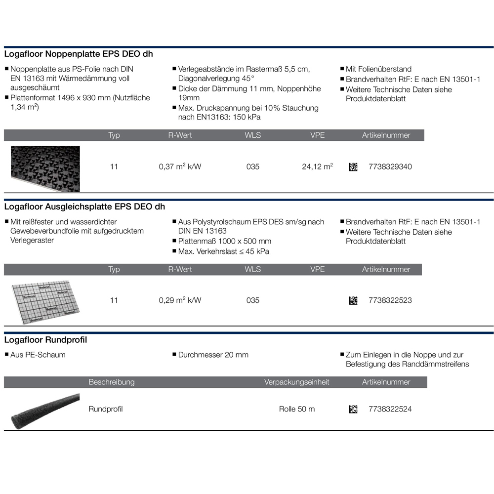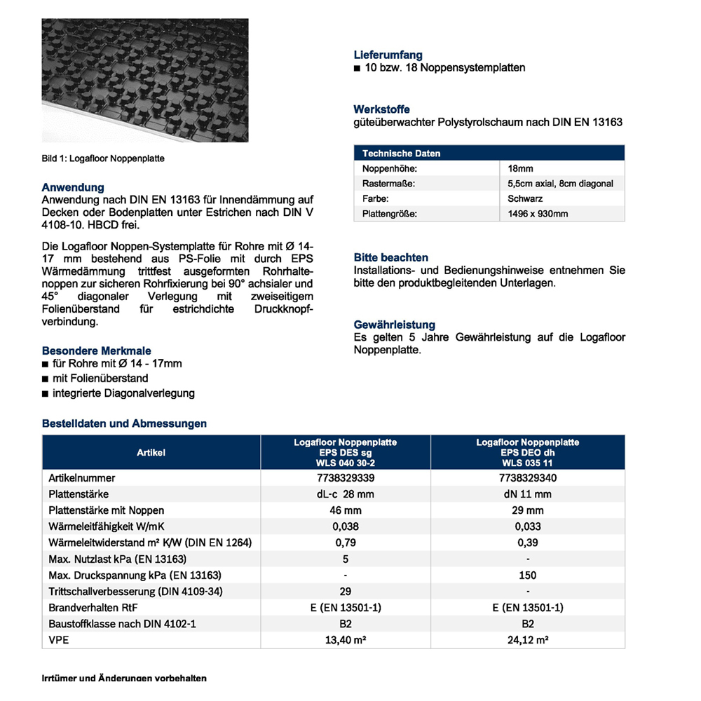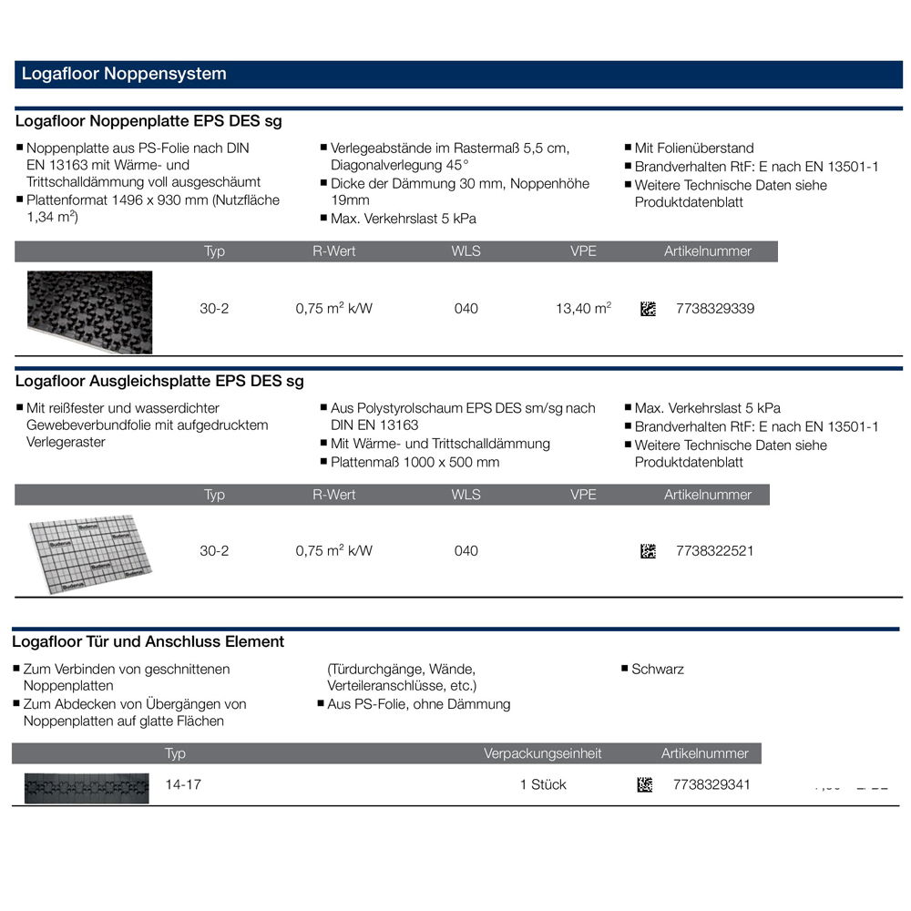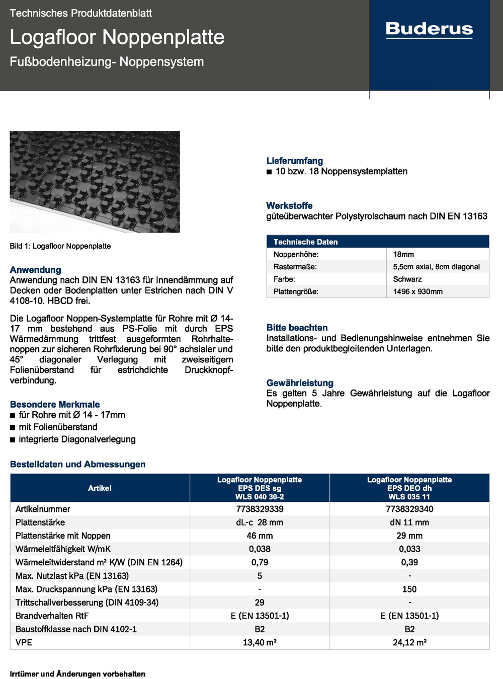 Buderus Logafloor Noppensystem Noppenplatten Fussbodenheizung EPS DES sg dh Wahl